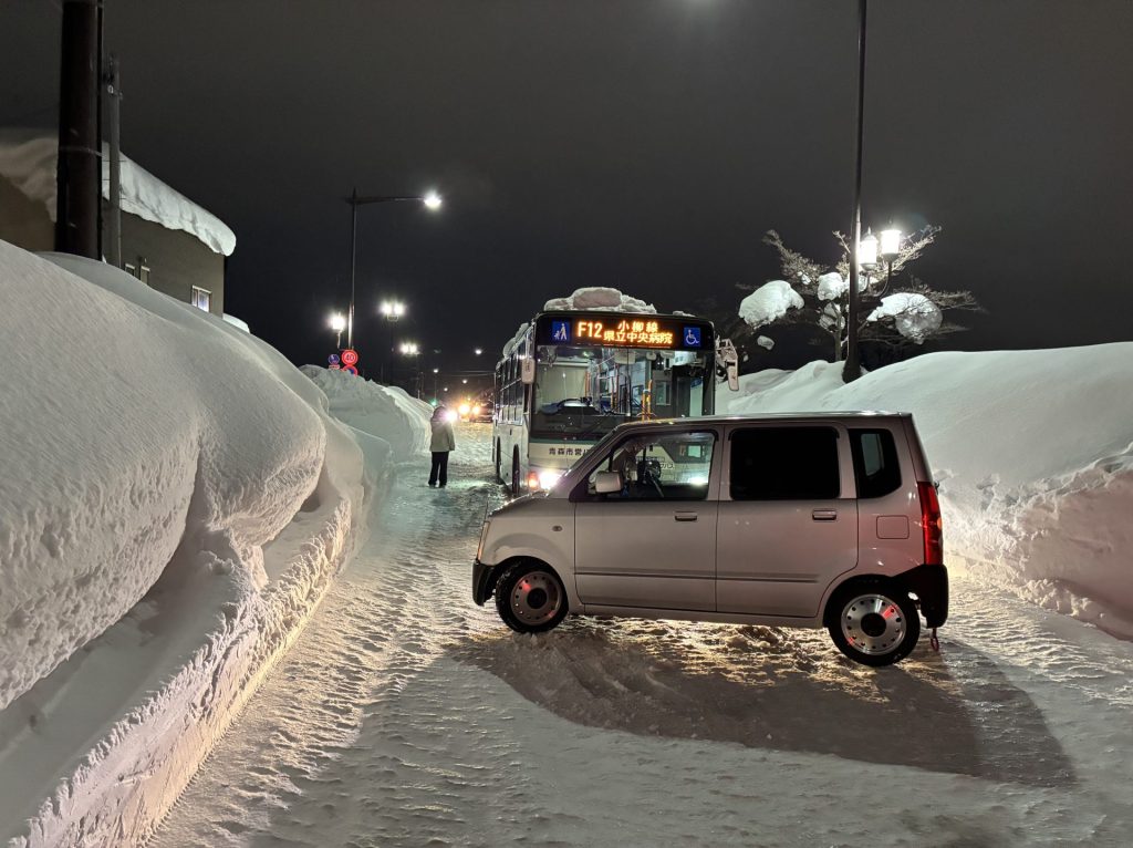 今年の豪雪に関して行政に対する批判を目にしますが、ここまでの雪はなかなか想定もできないし、資源も限られる中で行政に矛先を向けるのもちょっと可哀そうだな…という気もしています。とはいえ車も壊れそうなほどの道路に遭遇するとなんとかしてよ…とは思いますが。そんな中で目にした若夫婦の行動。人の好意に期待するのもよくないとは思いますが、でもやっぱり困ったときはまず自分たちで。そして助け合い。改めて気づかされた夜でした。